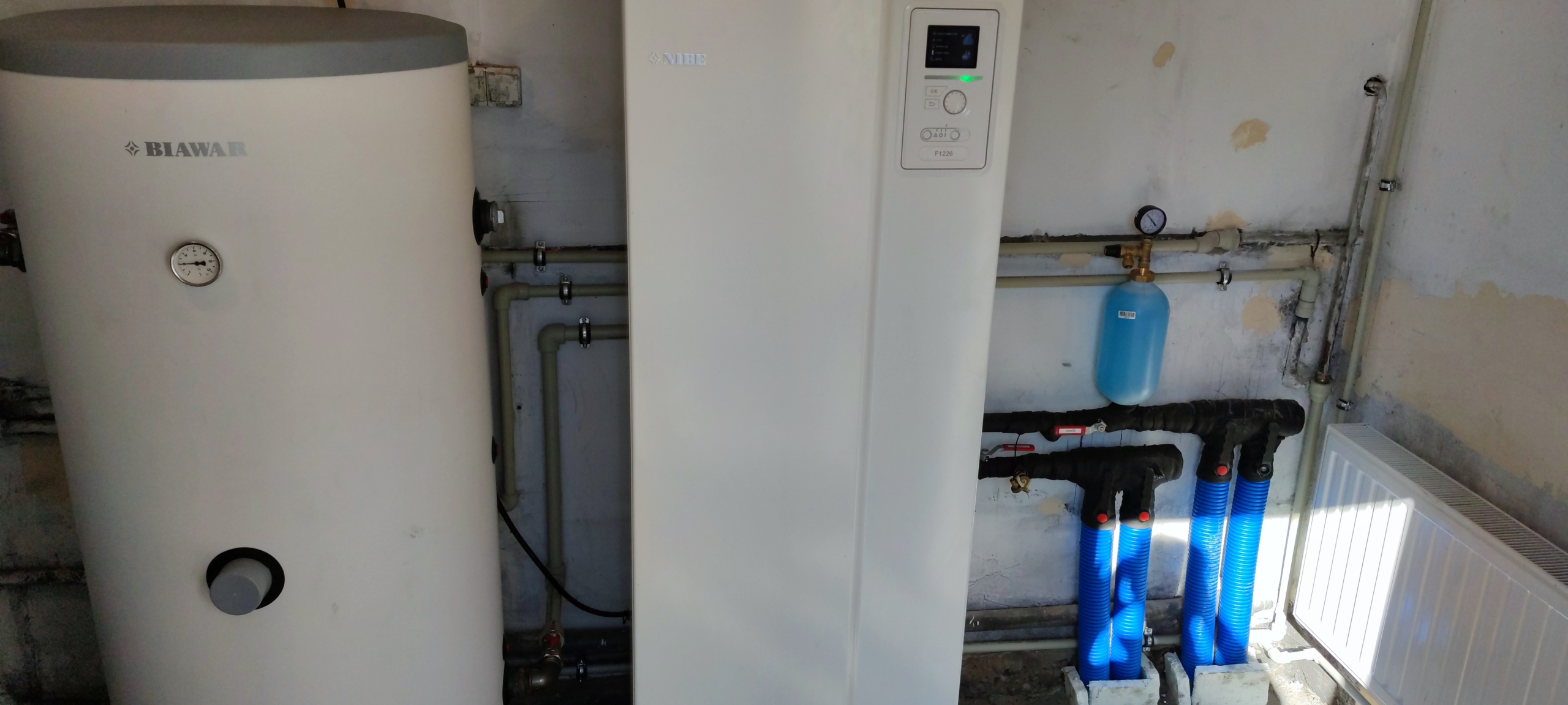Glinojeck – Bielawy – Gruntowa pompa ciepła Nibe f1226 8kW z odwiertami 140m w domu 180m (2020r)