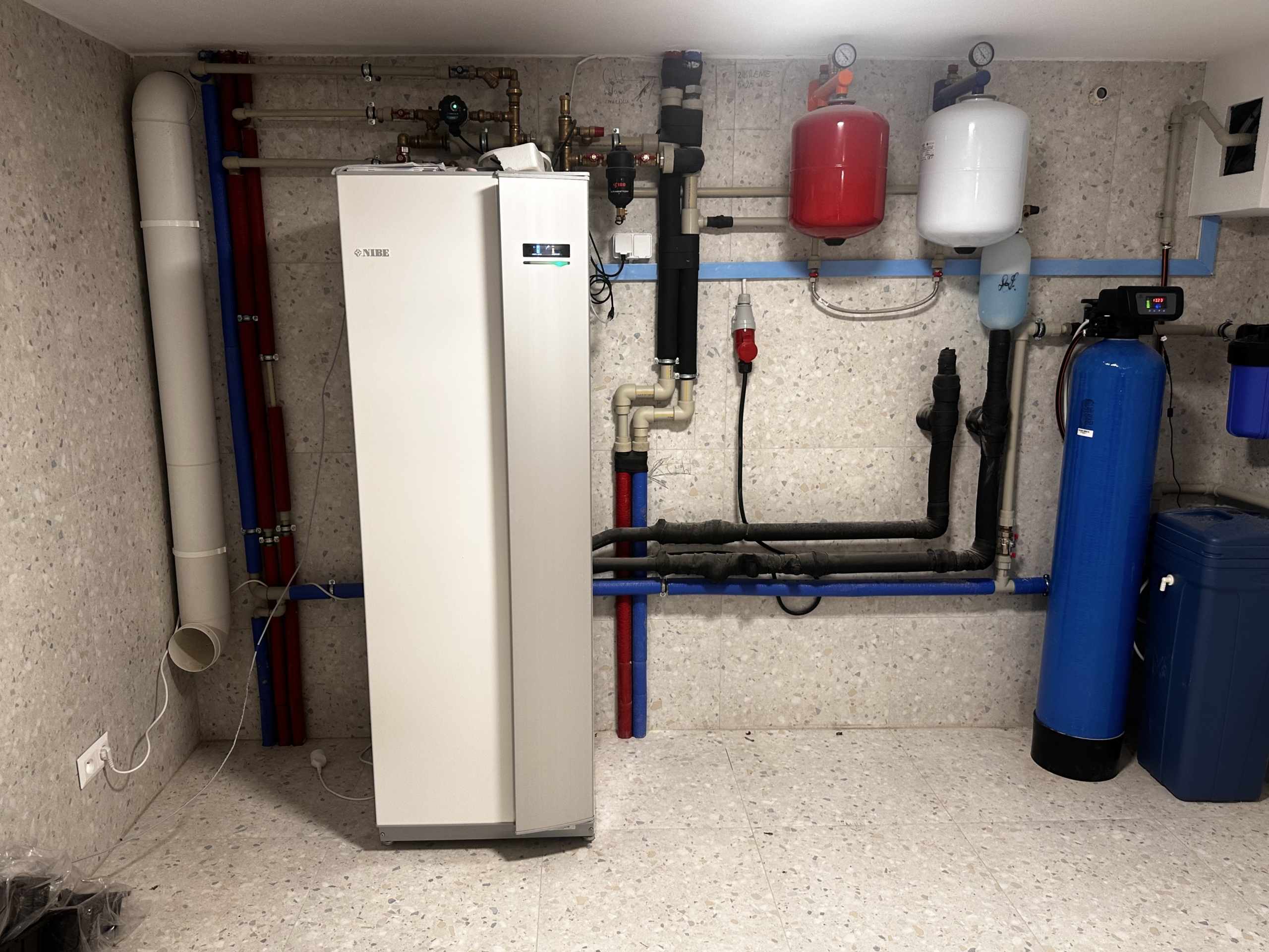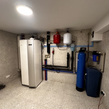 Kamień – gruntowa pompa ciepła Nibe f1245 12kW z odwiertami w domu 300m (02.2025)
