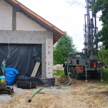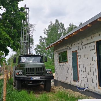 W 2023 roku w Nadarzynie wykonaliśmy odwierty pod gruntową pompę ciepła dla domu jednorodzinnego o powierzchni 240m2. Wykonano 3 odwierty po 100m.