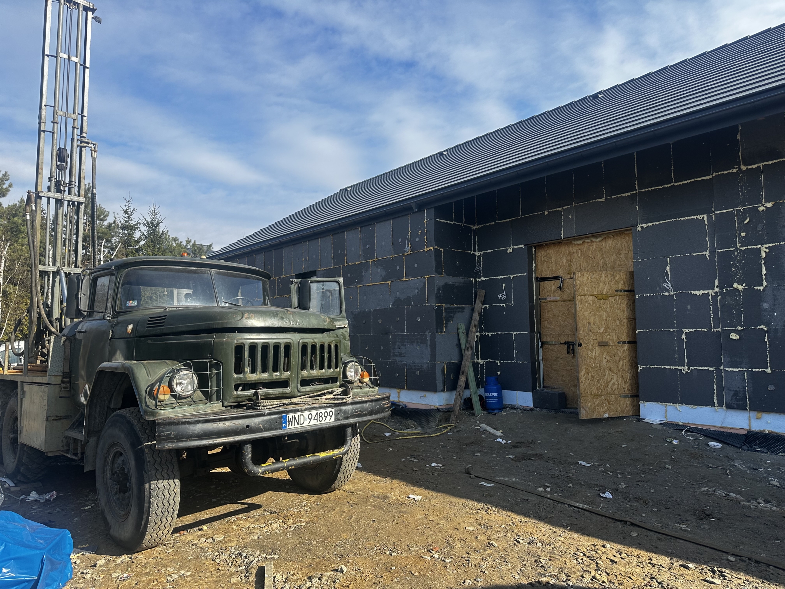 Główny etap realizacji w miejscowości Strzembowo obejmował zaprojektowanie i wykonanie pionowych wymienników gruntowych o bardzo wysokiej sprawności. Nasza ekipa przeprowadziła precyzyjne odwierty pod gruntową pompę ciepła Strzembowo o łącznej głębokości 360 metrów. Warto zaznaczyć, że tak duży metraż sond pozwala na niezwykle stabilny odbiór energii z gruntu, co jest kluczowe dla zachowania wysokiego współczynnika COP urządzenia przez cały rok. Co więcej, dzięki zastosowaniu własnego parku maszynowego, osadziliśmy wszystkie kolektory z najwyższą starannością. Takie podejście sprawia, że wymiana termiczna przebiega bez żadnych strat, co bezpośrednio przekłada się na rekordowo niskie rachunki za prąd.